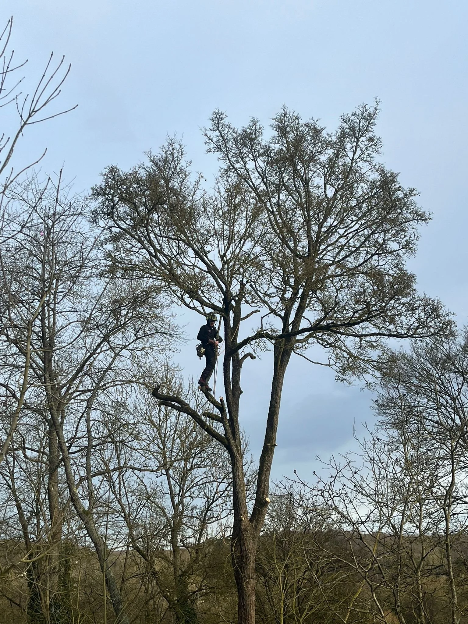 Nous ne commençons jamais sans un diagnostic. Un de nos experts se déplace pour évaluer l'arbre, son état de santé, les contraintes d'accès (proximité de la maison, lignes électriques, véranda) et les risques. C'est à ce moment que nous choisissons la meilleure technique (grimpeur, nacelle).